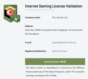 Betbom, Komorlar Birliği’ne bağlı Anjouan Adası Hükûmeti tarafından lisanslanmış ve düzenli olarak denetlenmektedir. Tüm kullanıcı fonları güvenli altyapılarda saklanır ve işlemler lisans denetimleriyle güvence altına alınır. Bu sayede üyeler, yatırımlarının korunduğu yüksek güvenlikli bir ortamda kesintisiz ve güvenli oyun deneyimi yaşayabilir.